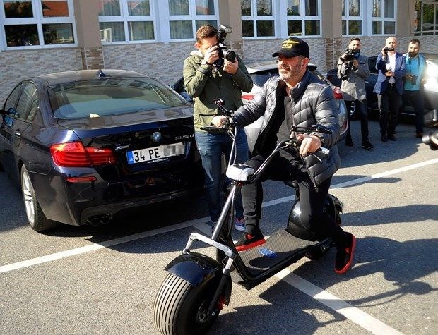 Beyazıt Öztürk, önceki gün yeni aldığı özel yapım Vespa motosikletiyle görüntülendi.