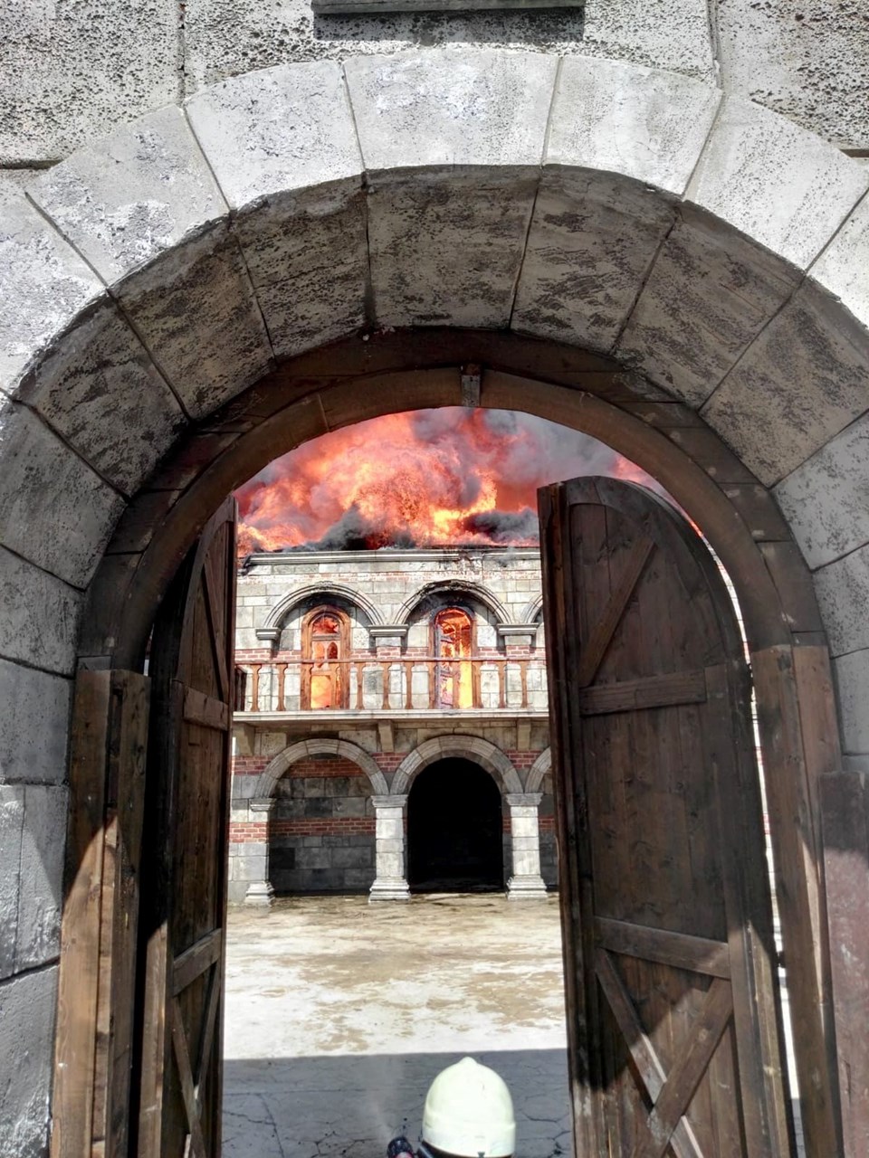 • 500 metrekarelik bir alanda etkili olan alevlerin kontrol altına alındığını dile getiren Çelikbilek, “En büyük sevicimiz can kaybının olmamasıdır. Yangın Film platosunda kullanılan ahşap malzemelerden çıkmış. Olay sırasında film çekimi yoktu” dedi.