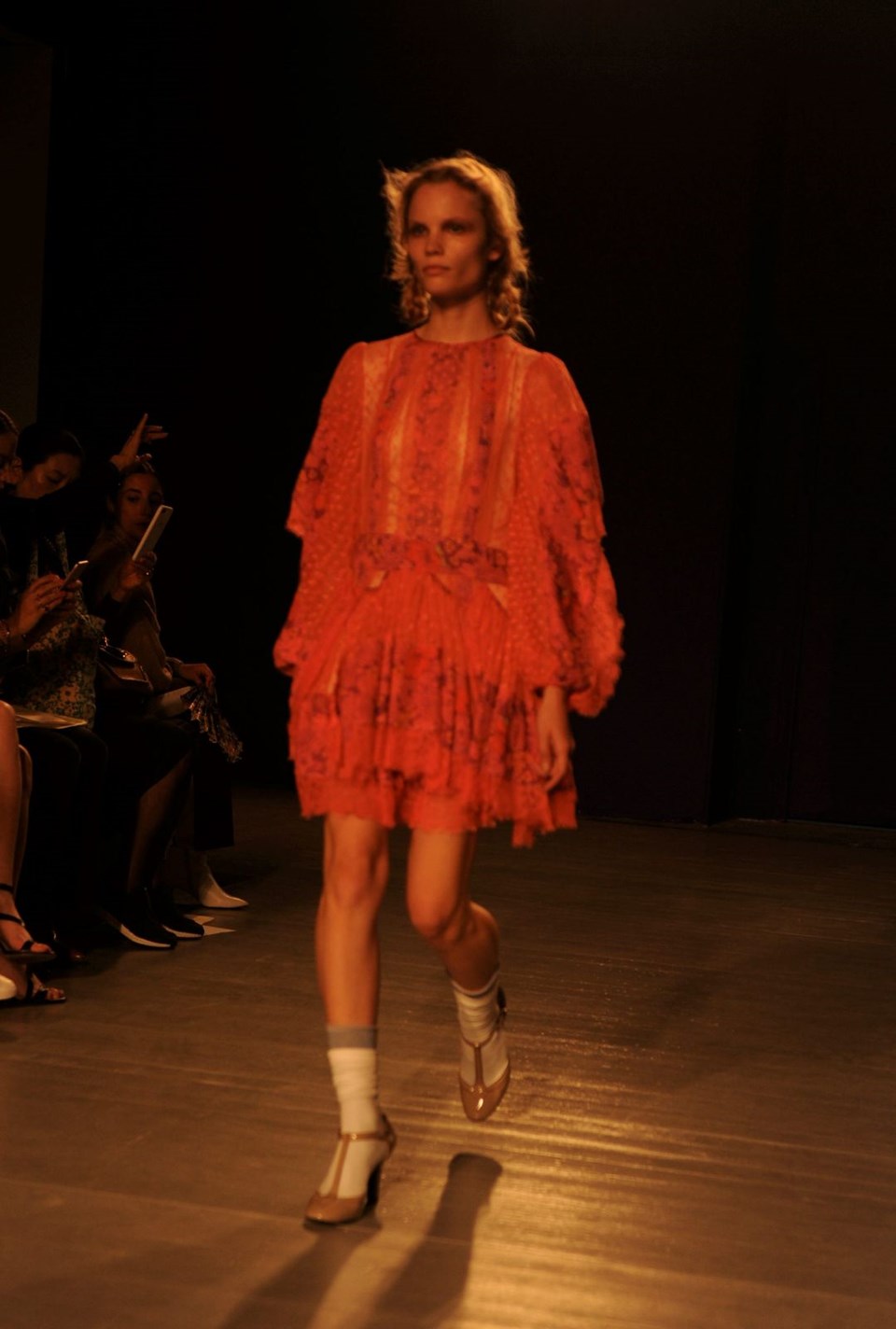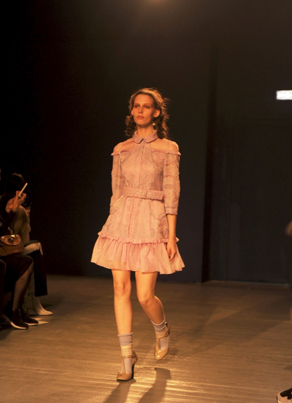 • “Bora Aksu, katman effektini yakalamak için yarattığı özel dantelle, nakışlar ve baskılar koleksiyondaki sert ve yumuşaklık dengesini kuruyor. Organza ve tül pelerinler, koleksiyonun dominant bir parçası ve rüyamsı bir hava yaratıyor.“
