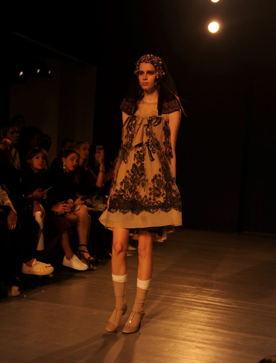 • “Beyaz ve koyu tonlardaki nakışlarda oluşturulmuş aplike danteller elbiselerin yakalarında, manşetlerde ve kurdelalarda kullanılarak, sessiz ve değisken bir mesaj veriyor.“