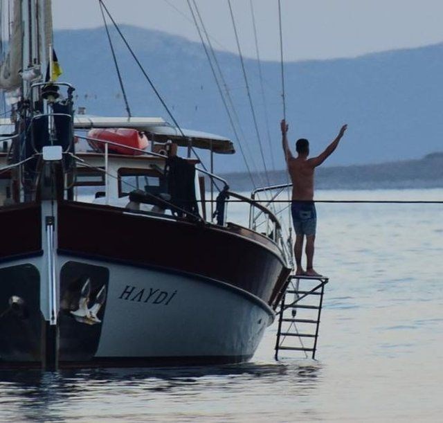 Ünlü oyuncu teknenin ucuna gidip kollarını iki yana açarak “Seni bu kadar seviyorum” diye bağırdı.