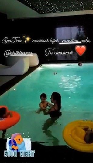 23 yaşındaki İspanyol model, Instagram’ın hikaye kısmında yayınladığı videoda çocuklarıyla yüzme havuzunda görülüyor.