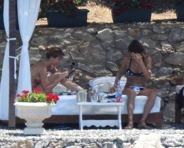 İki ünlü manken, önceki gün konakladıkları otelin iskelesinde görüntülendi.