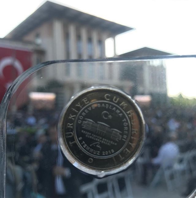 Yemin töreni hatırası olarak basılan madeni 1 lira