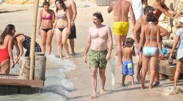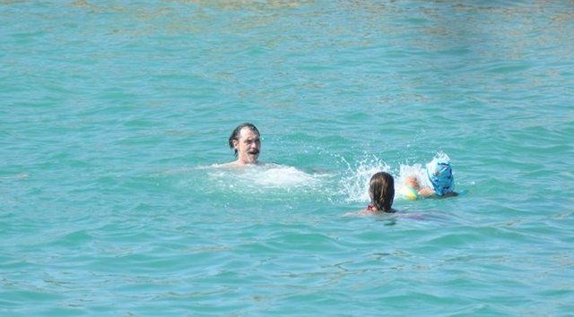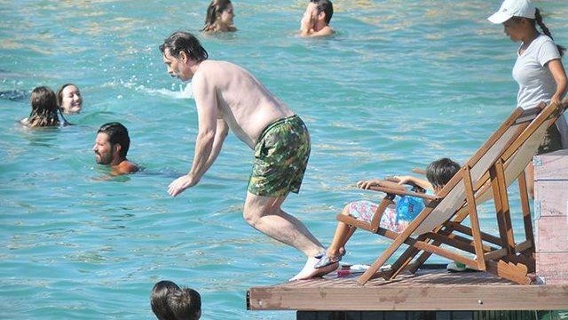 Eşi Elvin Beşikçioğlu, çocukları Ömer ve Derin Beşikçioğlu ile birlkte deniz keyfi yapan usta oyuncu, çevredekilerin yoğun ilgisiyle de karşılaştı.