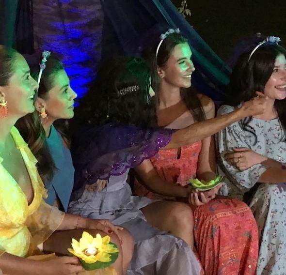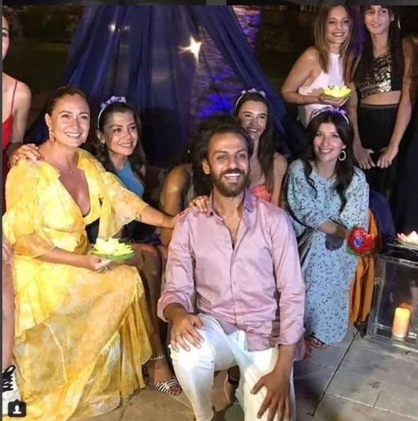 Kına gecesine çiftin yakın arkadaşları Gökçe Bahadır, Şebnem Bozoklu, Leyla Lydia Tuğutlu ve Ceyda Düvenci de katıldı.