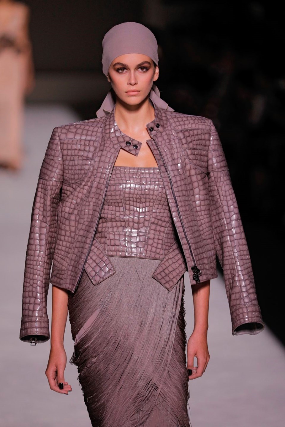 Defilenin bir diğer öne çıkan ismi, efsane süper model Cindy Crawford’un modellik yapan 17 yaşındaki kızı Kaia Gerber oldu.
