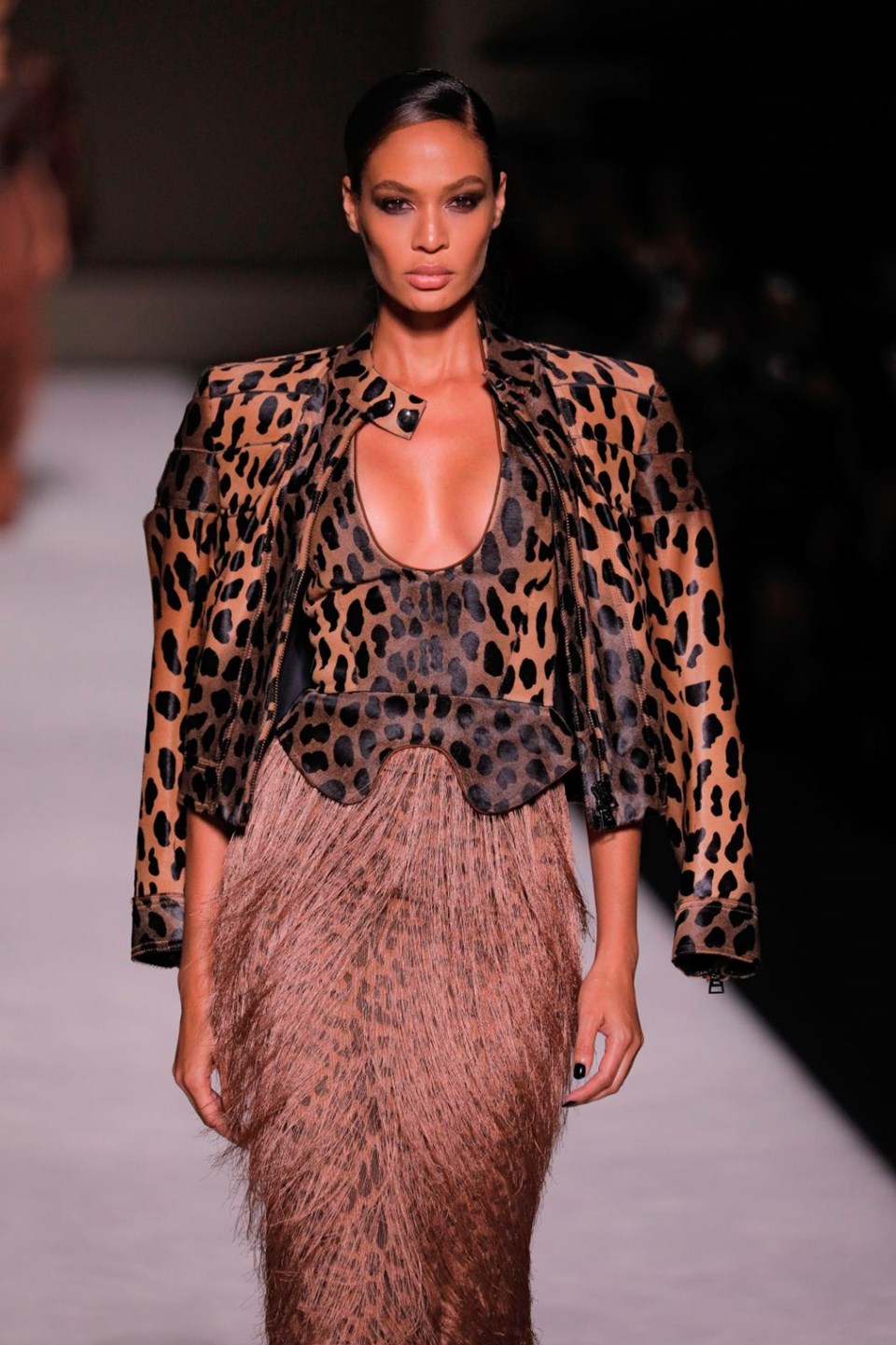 Joan Smalls da leopar desenli kıyafetiyle podyumda parlayan isimlerdendi.