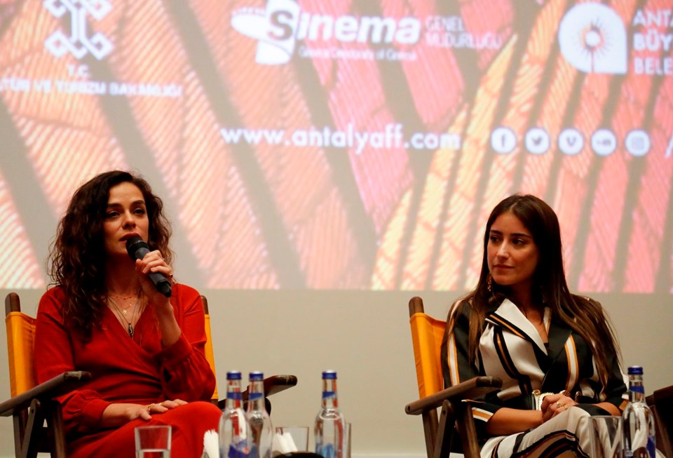 55’inci Uluslararası Antalya Film Festivali kapsamında AKM Aspendos Salonu’nda oyuncular Hazal Kaya ve Özge Özpirinçci ile yapımcı Fatih Aksoy’un katılımıyla ‚Sinemadan günümüz dizilerine, kadının yükselişi‘ konulu söyleşi gerçekleştirildi.