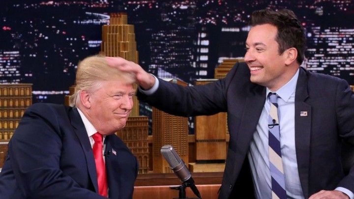 2016 yılında, başkanlık seçim kampanyası esnasında programına katılan Trump’ın saçlarıyla ilgili şaka yapan Fallon, The Hollywood Reporter’a verdiği röportajda, Trump’ın saçlarını eliyle karıştırmasının bir hata olduğunu söylemiş, şakası için, “Daha farklı olabilirdi” demişti.