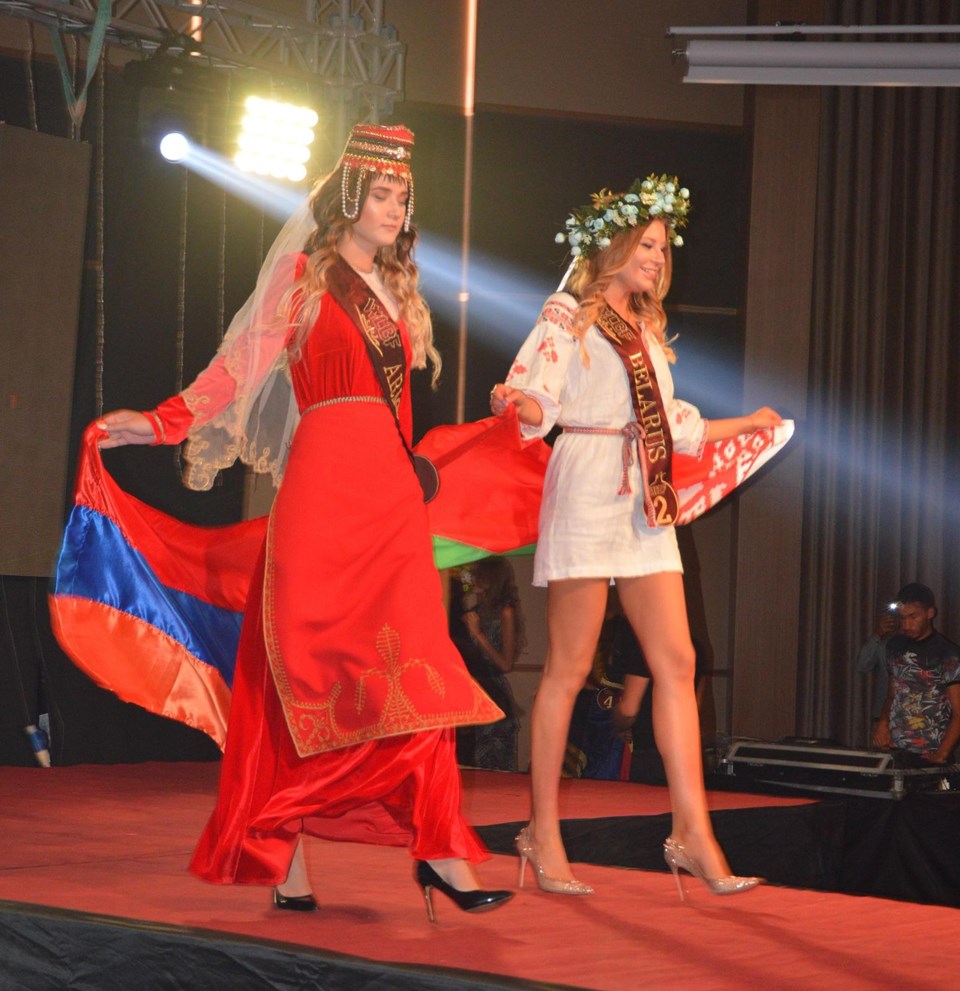 Güzeller önce ilginç yöresel kıyafetler,ardından da bikiniyle podyumda boy gösterdi.