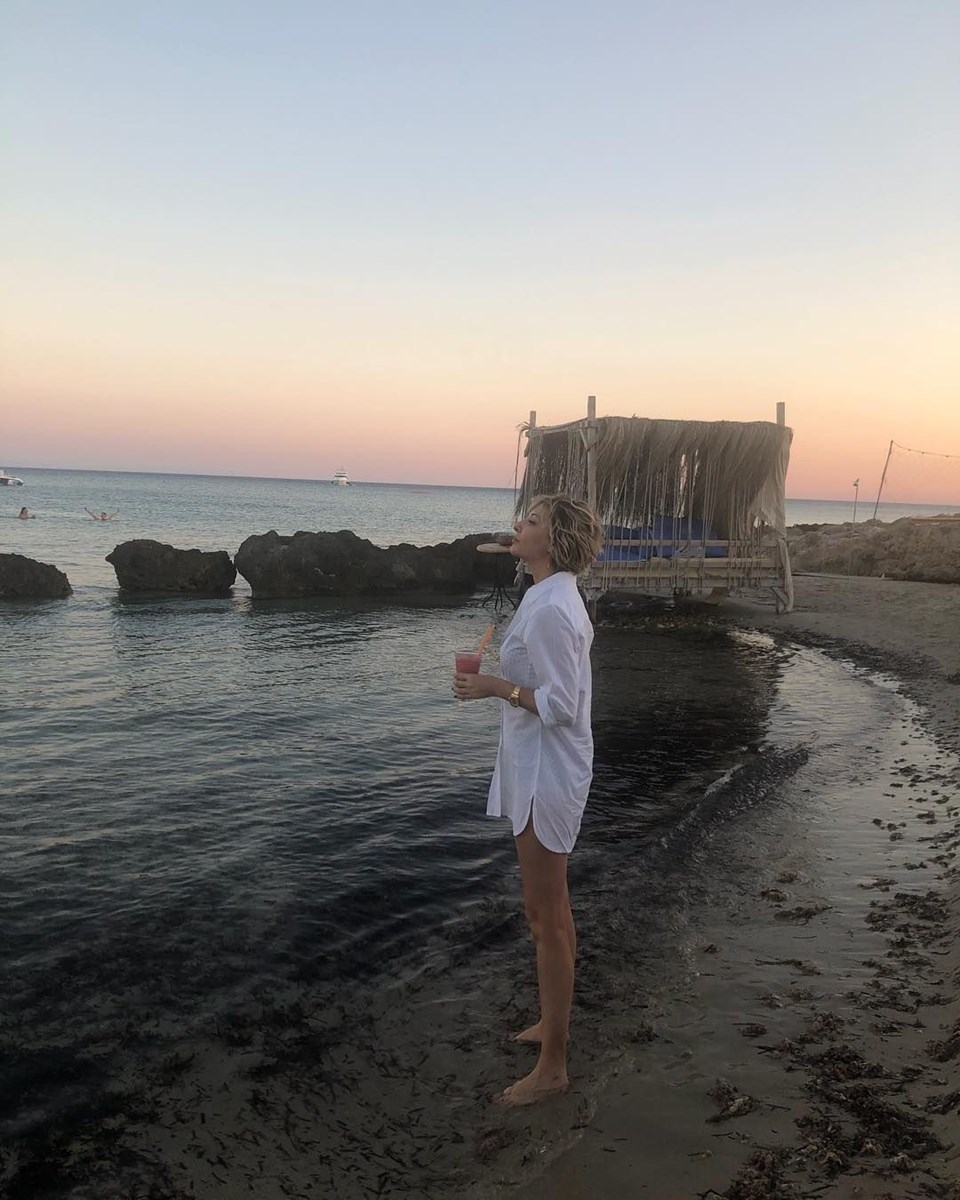 Merve Büyüksaraç, Alaçatı’dan paylaştığı fotoğrafını altına „Bu yıl burada poz vermeyeni dövüyorlarmış“ notu düştü.