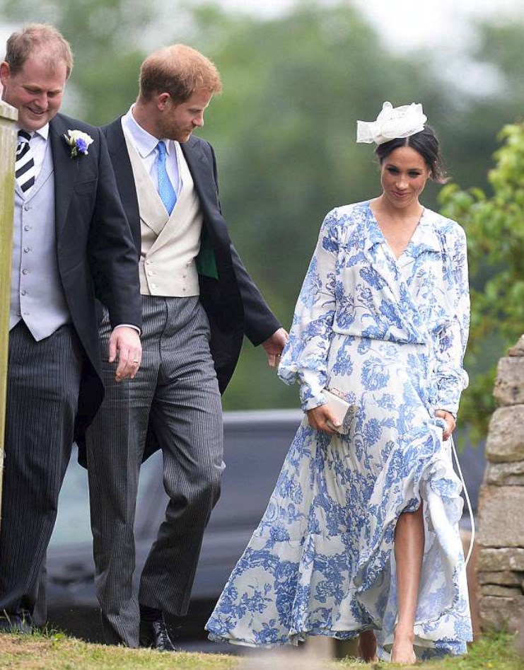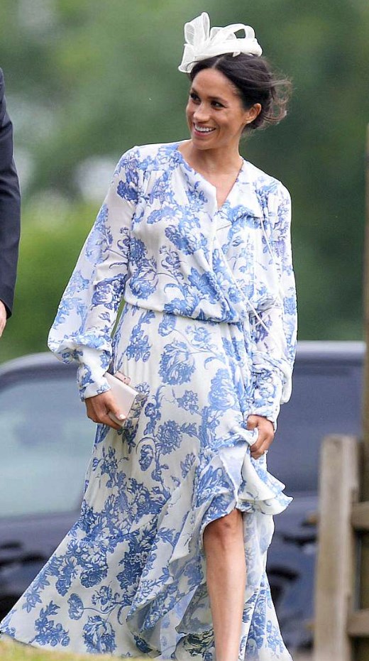 Prens Harry’nin kuzeninin düğünü için Oscar De La tasarımı 3922 sterlin (yaklaşık 25 bin Türk lirası) değerinde mavi çiçekli bir elbise tercih eden 36 yaşındaki Markle, tüm dikkatleri üzerinde topladı.