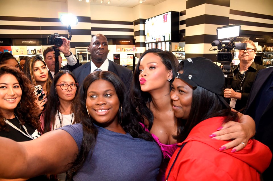 • Rihanna, markasına ait ürünlerin önünde poz vermeyi ihmal etmedi.