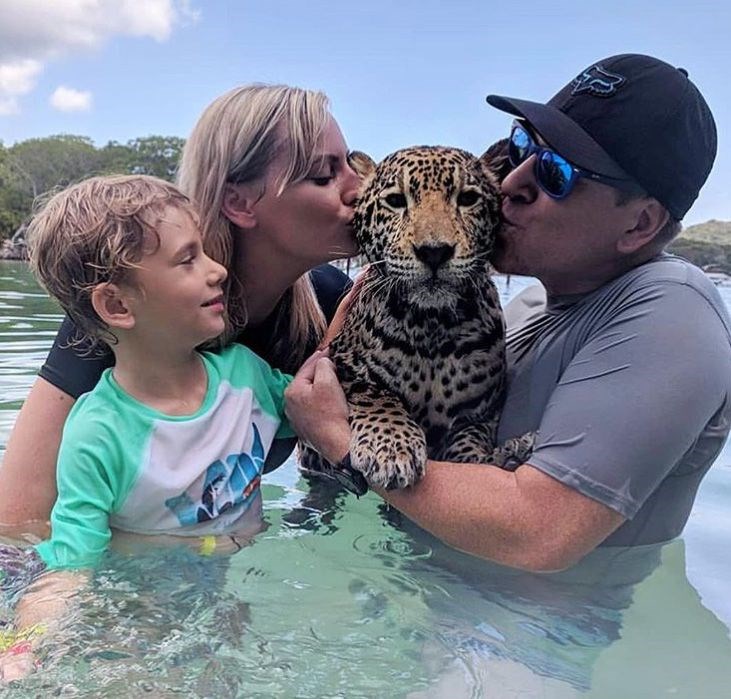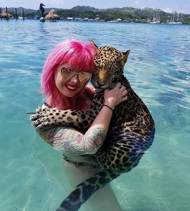 Honduras’taki Roatan Adası’nda egzotik hayvanların tedavi edildiği merkezi ziyaret edenler, 40 euro karşılığında jaguarlarla yüzüp, fotoğraf çektirebiliyor.
