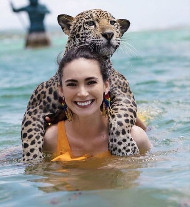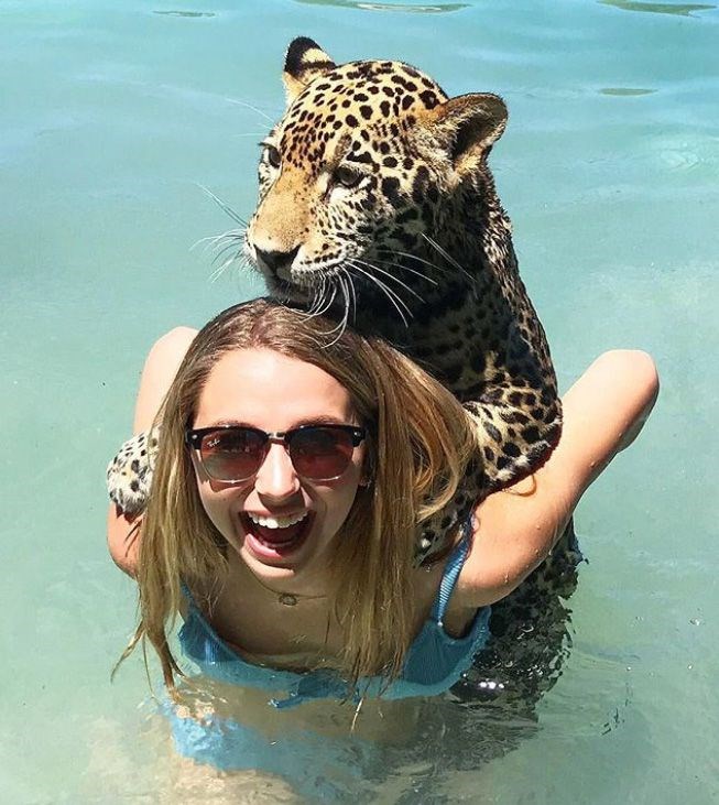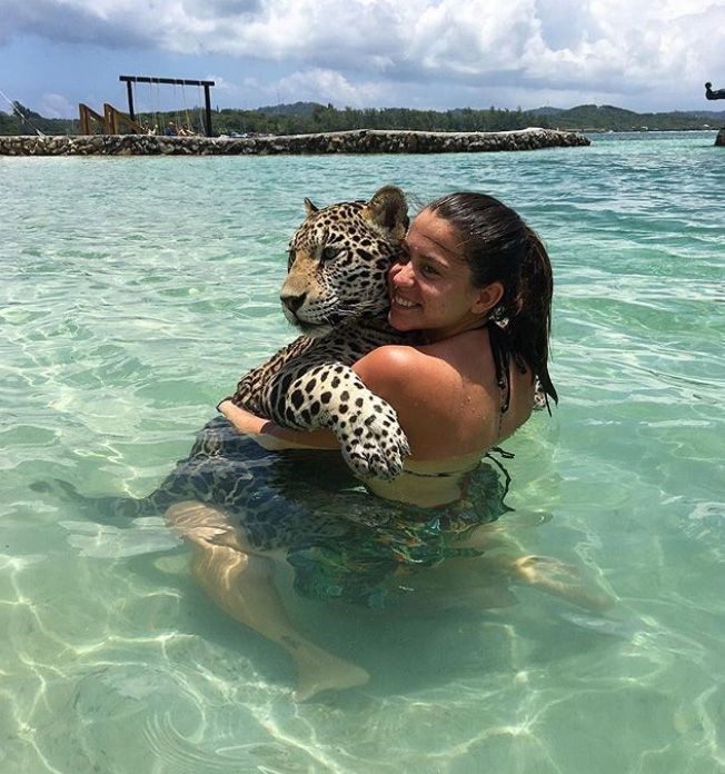 Jaguarlarla birlikte yüzen ve onlara dokunma şansı yakalayan ziyaretçiler böylece eşsiz bir deneyim ediniyor. Onlarla birkaç dakika geçirmek isteyen konuklar, merkeze 40 euro ödüyor. -
