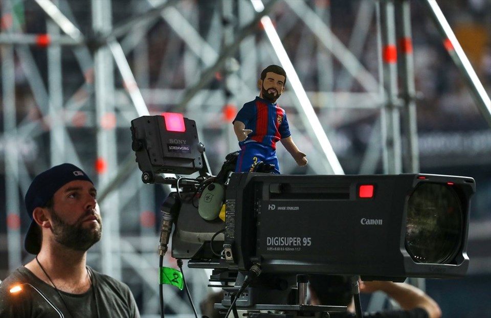 Beş farklı kostüm değiştiren sanatçının ekibindeki bir kameraman, sanatçının eşi Gerard Pique’nin kuklasını kamerasının üzerine koyarak çekim yaptı.