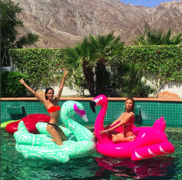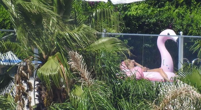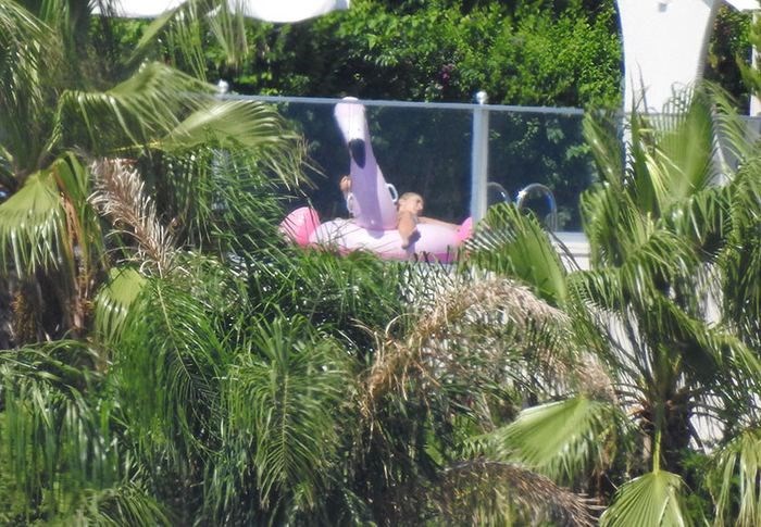 Pop yıldızı, kendisi için tahsis edilen villanın havuzunda flamingo ile keyif yaparken görüntülendi.