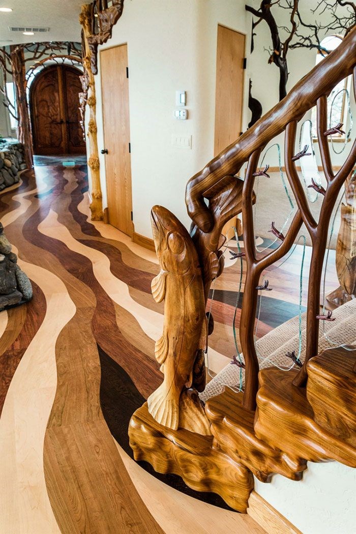 7,6 milyon (35 milyon TL) dolar fiyat biçilen evde değerli olan her şey ayrıntılarda saklı. Örneğin akçaağaç zemin, bir akarsu yanılsaması yaratıyor.