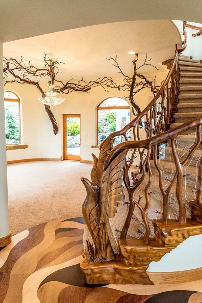 Evin en özenli bölümlerinden merdivenler, bölgeye özgü ağaçlardan yapılma.