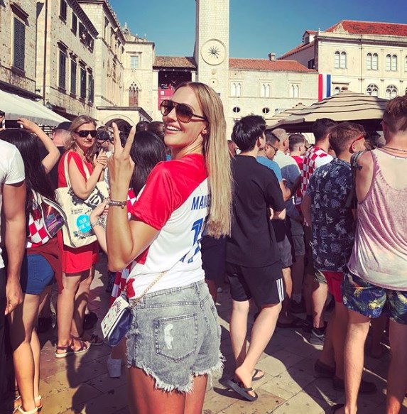 Tatil için Dubrovnik’te bulunan Meryem Uzerli ise Hırvatistan formasıyla ülke sokaklarlarında Hırvatlara destek oldu.